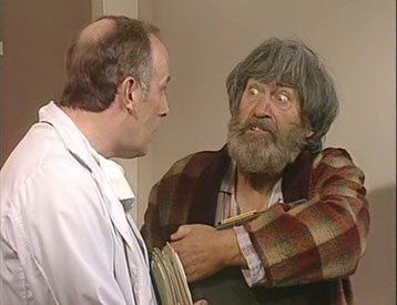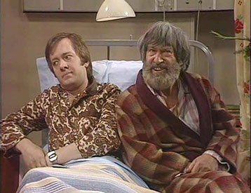 Only When I Laugh is a Yorkshire Television TV sitcom made for ITV and written by Eric Chappel. The title was in answer to the question, “Does it hurt?” It was set in an NHS hospital ward and starred James Bolamas (Roy Figgis) Peter Bowles (Archie Glover), Christopher Strauli (Norman Binns) and Richard Wilson (Gordon Thorpe). Patrick appeared in an episode called 'Where there’s a Will' as the eccentric unhygienic patient Joe Perkins with his invisible dog. Despite his appearance the tramp is very rich and consequently the story revolves around Roy, Archie and Norman smarming up to him, in the hope he will leave something in his will for them.